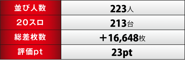 この日の20スロをまとめると、全体では差枚数+16,648枚とキッチリ勝利を収めた。優秀30台以外の機種以外にもドル箱表示が散見され当日の好況が伺えた。これで同店の「ヒーローズレポート」は6連勝、少しでもイイ感じで勝負したいなら月イチペースで繰り広げられる取材から目を離すな!