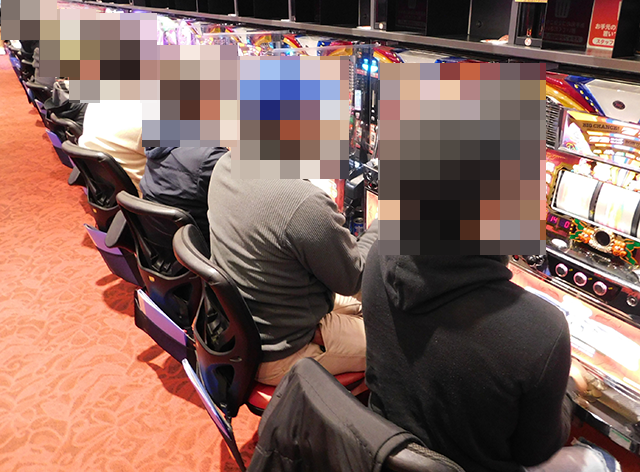 15時半の時点で、満席かつ全台がボーナス回数20回以上を記録していた。