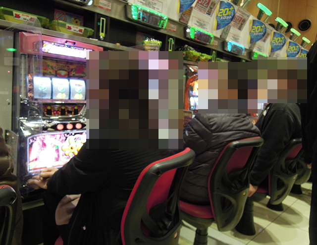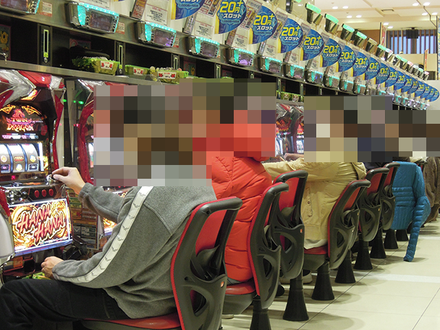 パチンコとパチスロの各シマをまわっていったなかでも、「沖ドキ!2-30」で目にした活気のあるシーンが印象に残っている。