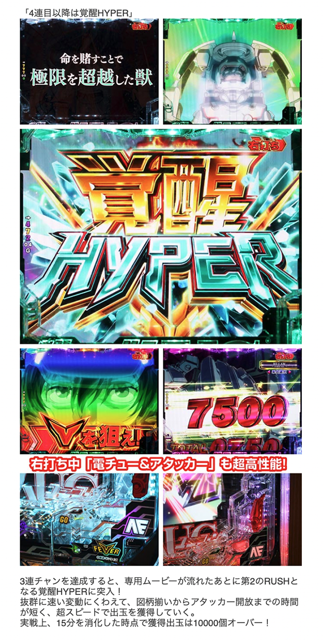3連チャン到達で消化スピードが極限まで上がる唯一無二のRUSHを搭載している。