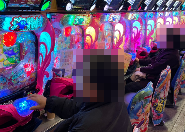 19時過ぎの店内には、多くのプレイヤーが集合。パチンコとパチスロの両方がにぎわっていた。