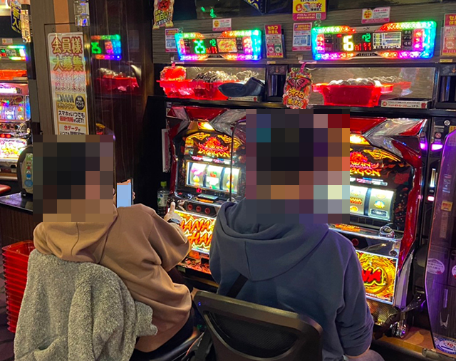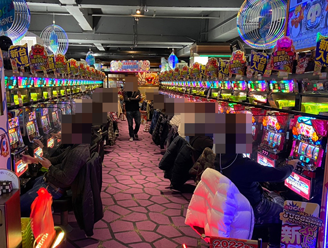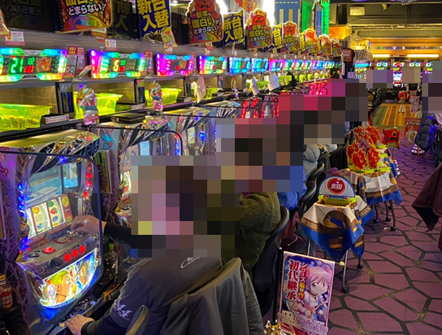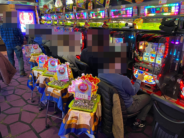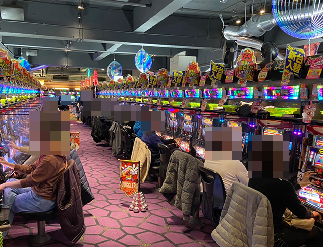 「マイジャグラーV」や「マイジャグラーⅢ」、「ファンキージャグラー2」など、あちこちに活気のある光景が広がっていた。