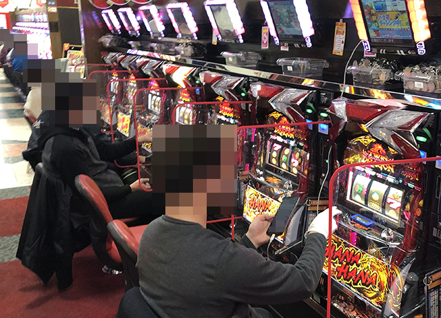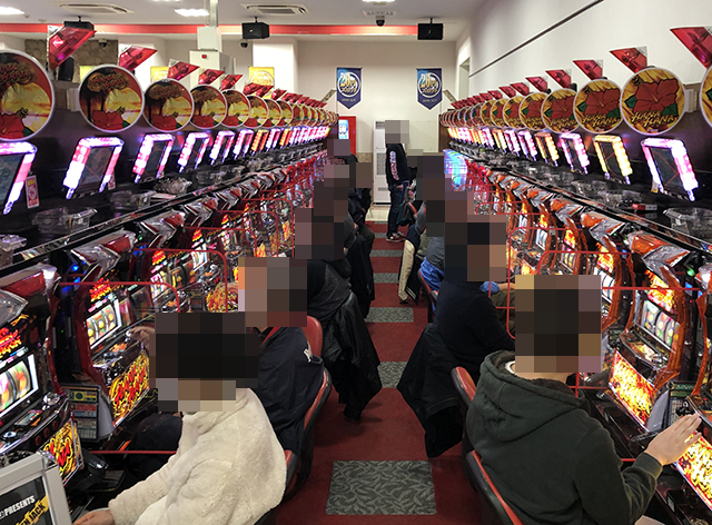 パチスロコーナーはハナハナシリーズを中心に活気づいており、あちこちに笑顔が広がっていた。