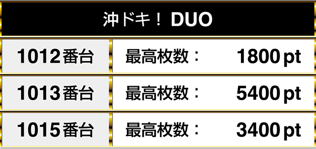 『沖ドキ!DUO』に1800pt、5400pt、3400ptが並ぶ!!