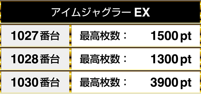 閉店時には3台が並んで1000pt以上を記録し、そのうちの1台は3900pt!!
