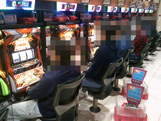 15時半過ぎのハナハナシリーズでは、5台中4台が埋まっていた「プレミアムハナハナ-30」がとくに目立っていた。