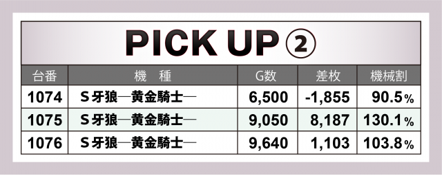 またこの日は横並び好況スポットが5機種23台で出現。最も目立ったのが『SLOTバジリスク~甲賀忍法帖~絆2』で、万枚突破台を始めに6台でトータル差枚数+2万5千枚超え、6台平均では+4千枚超! その他では『S牙狼―黄金騎士―』で8千枚達成台があり、その他機種にも+5千枚以上を記録した台が複数!!