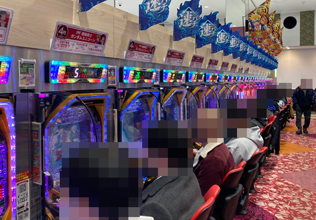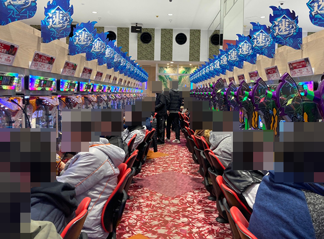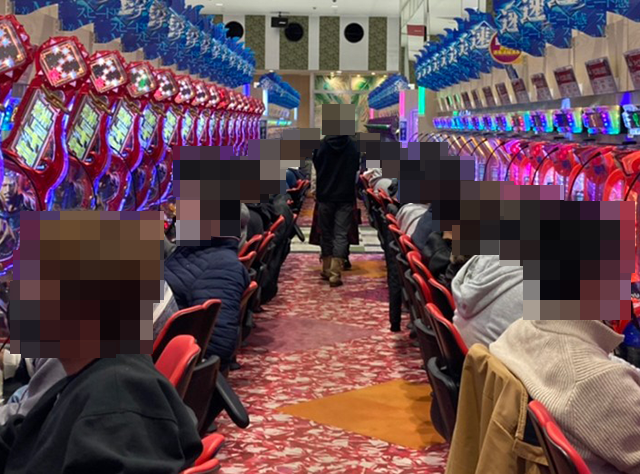 夕方頃にはたくさんのプレイヤーが来店しており、パチンコ全体の稼働率は8割オーバー。