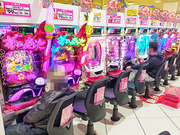 取材時は貸し玉料金に関係なくにぎわっており、各シマとも明るい雰囲気に包まれていた。