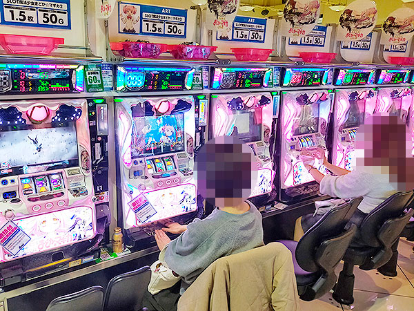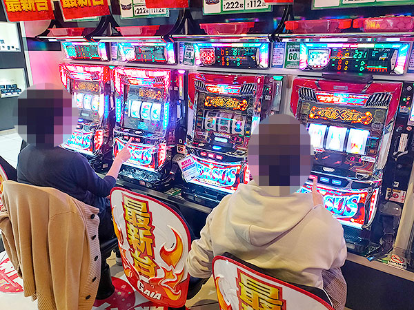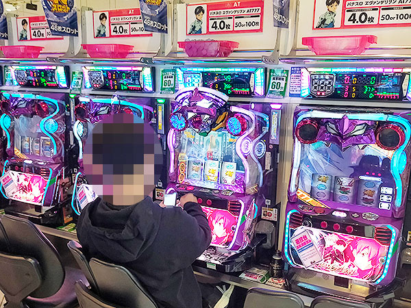 「パチスロディスクアップ」や「パチスロ ヱヴァンゲリヲン AT777」、「パチスロ 天元突破グレンラガン」では理想的な展開を迎えたプレイヤーが見られ、実に微笑ましい光景が広がっていた。