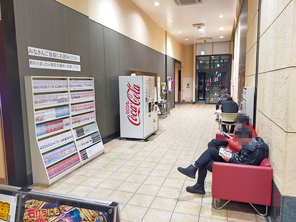 レストスペースには幅広いジャンルの漫画本が用意されており、取材時も満喫するプレイヤーが多かった。