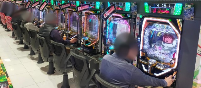4パチでは「Q」が見守る中、2021年末の前回取材時同様に1種2種混合スペック4機種40台が取材対象に。全台トータルで差玉+20万発を突破、その中では『Pフィーバー 機動戦士ガンダムユニコーン』『Pフィーバーマクロスフロンティア4』にそれぞれ5万発を超えた台が現れた。また、取材対象台ではファンの夢中になって通常時回転をこなす様子が目についた。