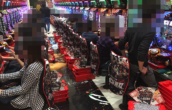 16時頃の4円パチンコをみると、朝から人気の「ぱちんこCR真・北斗無双」では、たくさんのプレイヤーが笑顔で遊技をおこなっていた。
