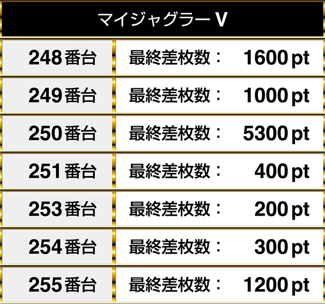 最終的には248番台から251番台までが並んでプラスptとなり、そのうちの1台は5000ptオーバー!!