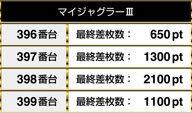 『マイジャグラーⅢ』は4台が並んでプラスptを記録し、3台が1000ptを上回る!!