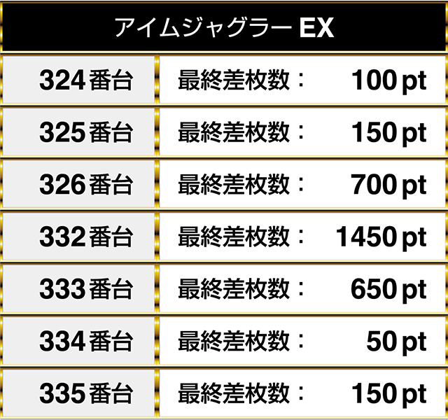 『アイムジャグラーEX』は2箇所に3台以上の並びでプラスptとなる場所があった。
