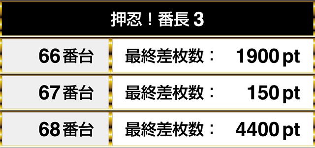 『押忍!番長3』も3台が連なってプラスptとなり、1台は4000ptを上回った。