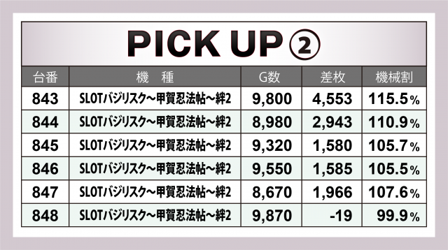まずはパチスロ優秀30台のPICK UPから。30台全てが差枚数+2千枚を超えうち25台が+3千枚以上の中、後述する横並び好況スポットはもちろん、それ以外でも+4千~5千枚クラスの台がゴロゴロ。上写真で挙げた『パチスロ聖闘士星矢 海皇覚醒』や『パチスロ モンキーターンⅣ』が+7千枚を超え特に優秀だった。