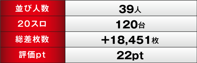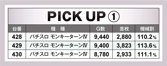 昨年10月・11月、そして今回と、3連続でプレイヤー側のプラスを実現してくれたモナコ香寺。そのプラス差枚は前回よりダウンしてしまったものの+18,451枚と、優秀台が多数あったと確信させるに十分な数値。改めてその高い実力と懐の深さを思い知らされた常連さんも少なくなかったことだろう。