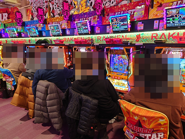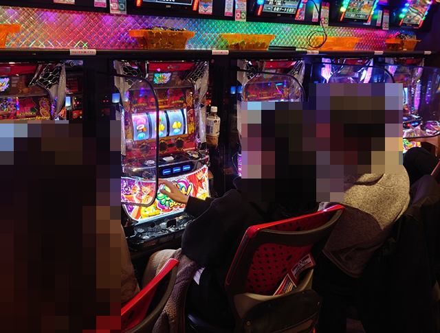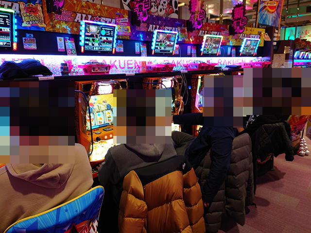ハナハナシリーズや「沖ドキ!DUO-30」などの沖スロも大にぎわいといった状況。