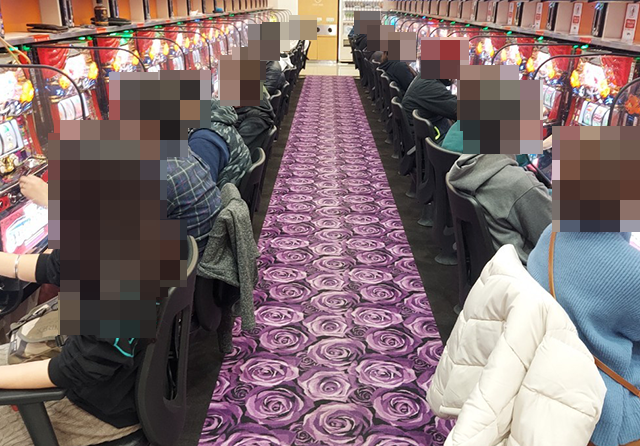 『マイジャグラーV』の稼働率も高く、多くのプレイヤーが遊技をおこなっていた。