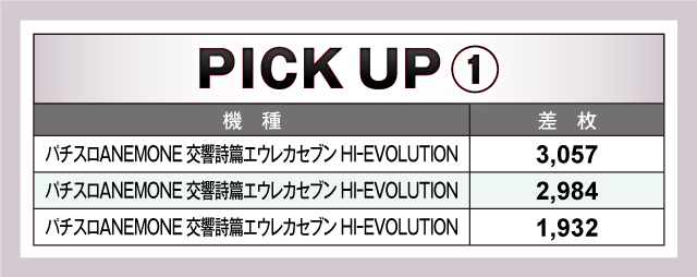 そして、もっとも注目を集めたのが『エウレカセブン HI-EVOLUTION』だ。設置4台中3台がプラス収支で、合計差枚も6000枚を超えるなど、英雄と呼ぶにふさわしい結果となった。