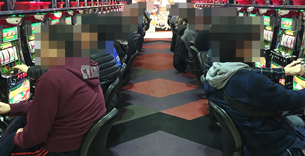 ボーナスタイプのジャグラーシリーズもほぼ満席となっており、幅広い年齢層のプレイヤーを確認。