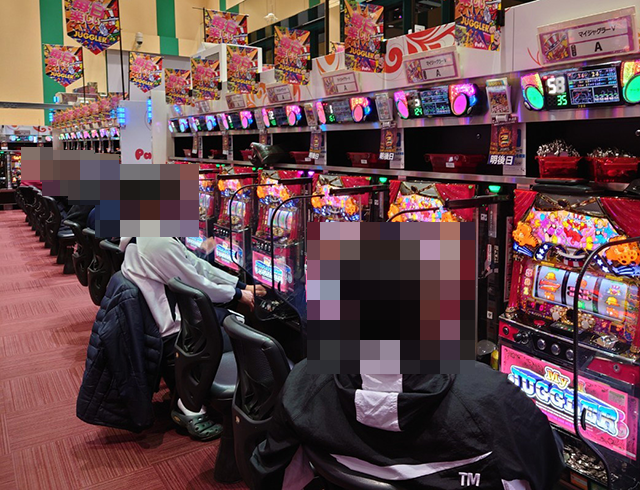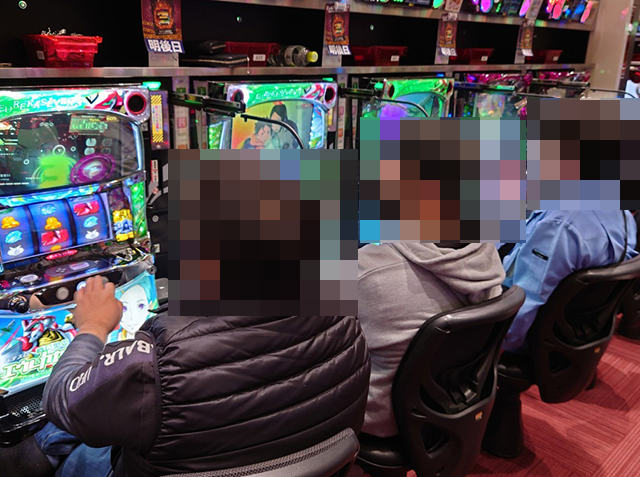さまざまな機種が支持されているなかでも、「パチスロ戦姫絶唱シンフォギア 勇気の歌」が満席となるほどに好評。