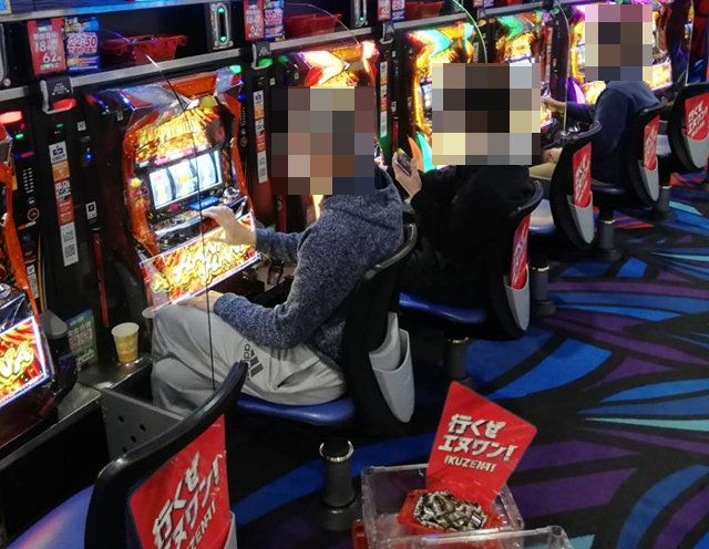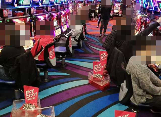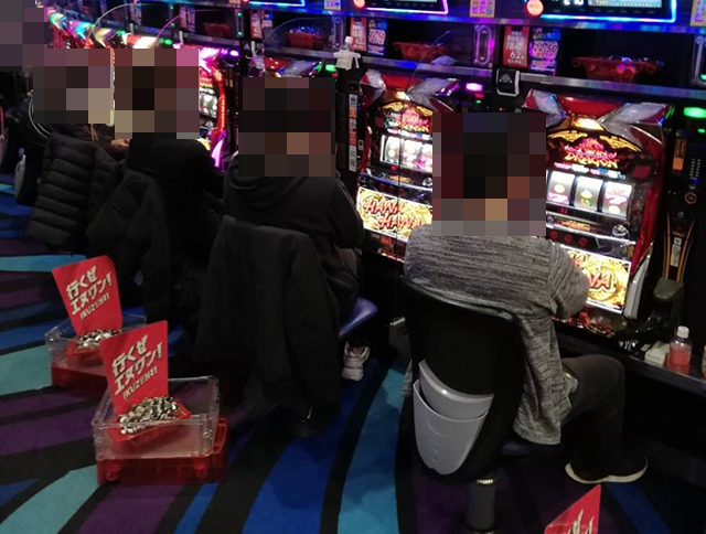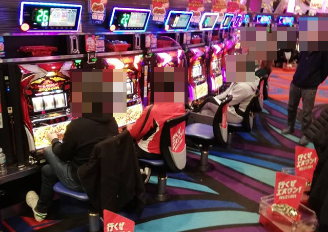 25台設置の「プレミアムハナハナ-30」は約6割が埋まっており、うれしそうに遊技をおこなっている姿があちこちにあった。