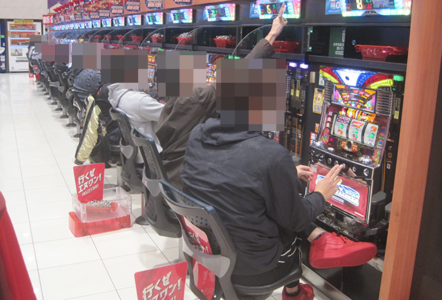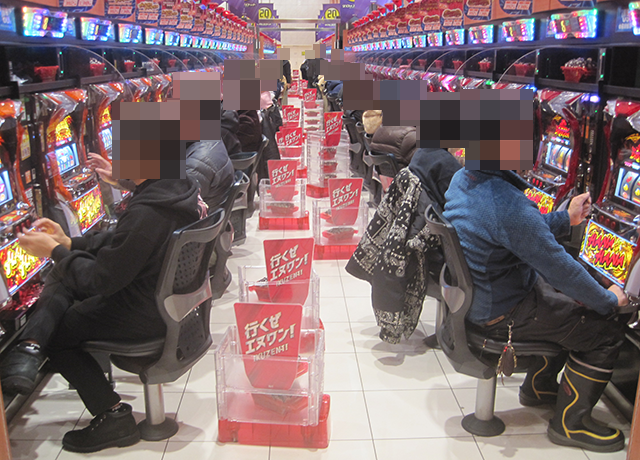 舞台となった「エヌワン村上インター店」をみると、たくさんのプレイヤーが遊技を楽しんでいた。