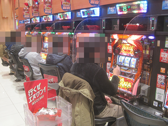 17台中11台が埋まっていた「プレミアムハナハナ-30」にも、楽しそうなプレイヤーが多数。理想的といえる展開で遊技をおこなっていたことも覚えている。