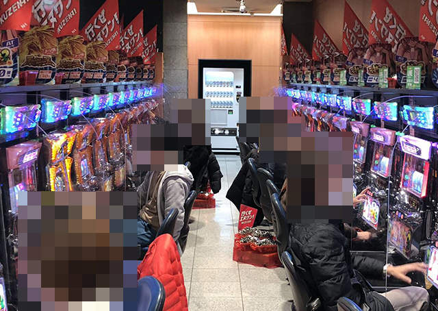 パチスロとおなじく、パチンコでも華やかなシーンがみられ、ホール全体がにぎわっていた。