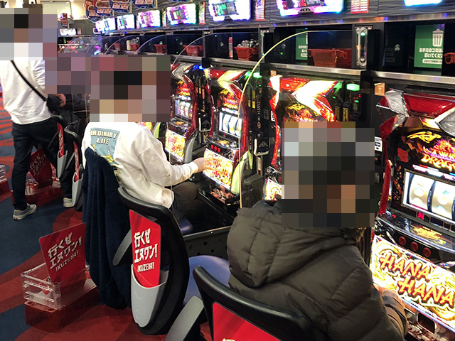 14時半ごろのハナハナシリーズでは、「プレミアムハナハナ-30」を支持しているプレイヤーがとくに多く、楽しそうな光景が広がっていた。