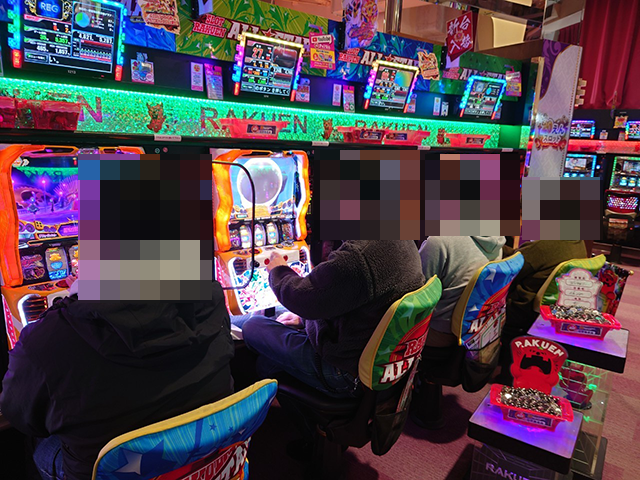 「アイムジャグラーEX AnniversaryEdition~プレミアムピンク~」や「スーパーミラクルジャグラー」で遊技をおこなっているプレイヤーもうれしそうであり、ジャグラーシリーズのどの機種でも、充実した時間を過ごしているといった姿がみられた。
