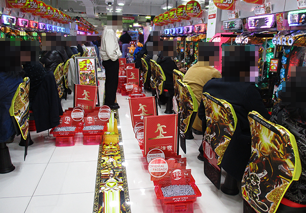 4円パチンコでは、「ぱちんこCR真・北斗無双」と「ぱちんこCR北斗の拳6 拳王」が大盛り上がり。機種の性能を最大限に引き出しているような姿が多く、華やかな光景がシマ全体に広がっていた。