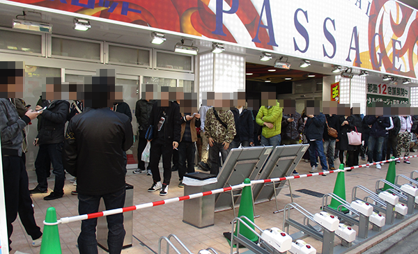 REAL取材Ωの2日目となる3月22日の朝イチも入場抽選がおこなわれ、参加したプレイヤーは80名前後。一般入場の列にも多くのプレイヤーが並んでいた。