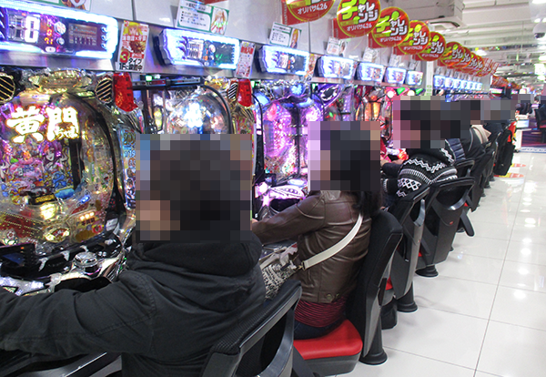 「CRフィーバー機動戦士ガンダムLAST SHOOTING」や「CRAヘルプ!!! 恋が丘学園おたすけ部」などの新台もにぎわいは大きく、うれしそうなプレイヤーも多数。