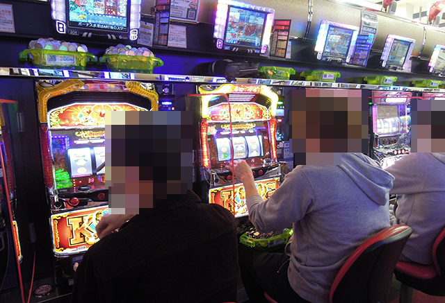 『マイジャグラーV』で遊技を楽しんでいるプレイヤーも多く、大きくにぎわっていた。
