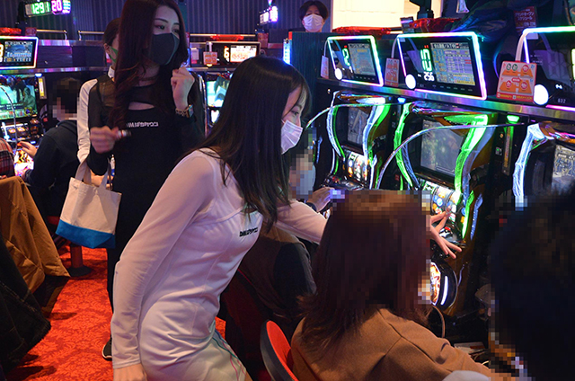 さて、開店と同時に盛り上がりを見せ始めた店内では、ぱちタウンエンジェルスの4人も大忙し。