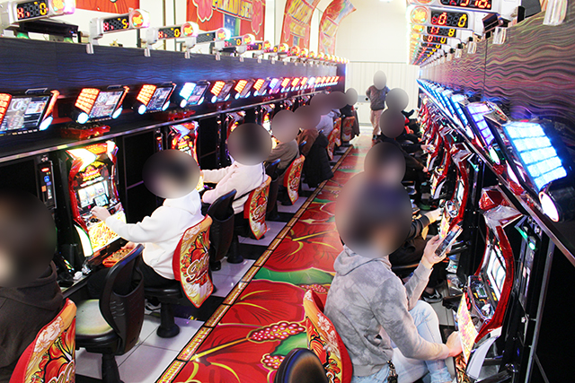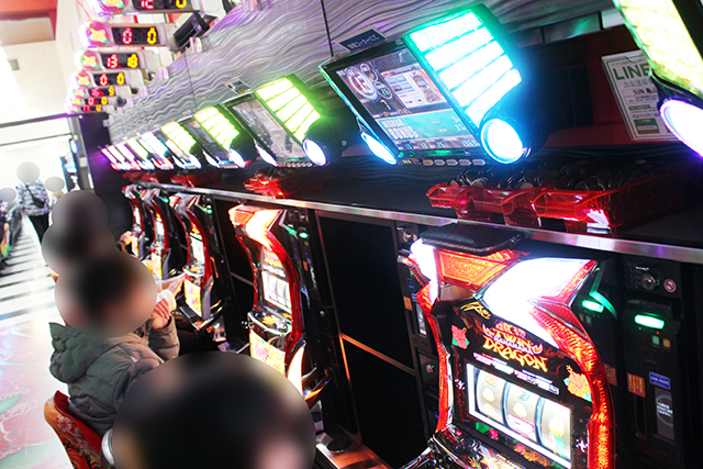 『ハナハナ鳳凰-30』と『ドリームハナハナ-30』が設置期限を迎え、『ハナハナ』シリーズが『ツインドラゴンハナハナ-30』の1機種となった期間となり、人気が本機に集中した模様。普段のリアルモンスタークロスと同様のプラス台数を記録したが、差枚は惜しくもプラスに届かず。そんな『ハナハナ』シリーズの隣に9台ある『沖ドキ!DUO-30』に好調台が並んでいたと思われるが、5台並び中プラス台は3台。たとえ好調台でもスランプの荒さが初代を思わせるところが、逆に今後の人気復活を想像させる状況となっていた!