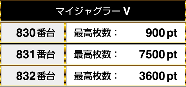 『マイジャグラーV』に900pt、7500pt、3600ptが並ぶ!!