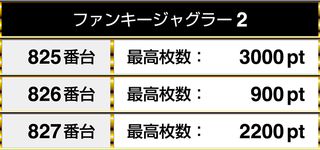 『ファンキージャグラー2』も3台が並んでプラスpとなり、1台は3000ptを記録!