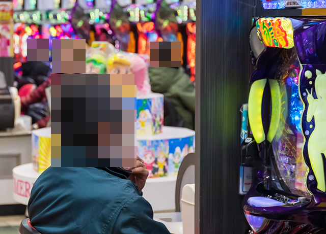 幅広い年齢層のプレイヤーが遊技をおこなっており、パチンココーナー全体が華やかな雰囲気。