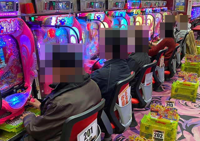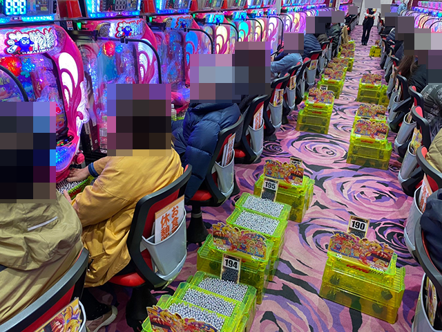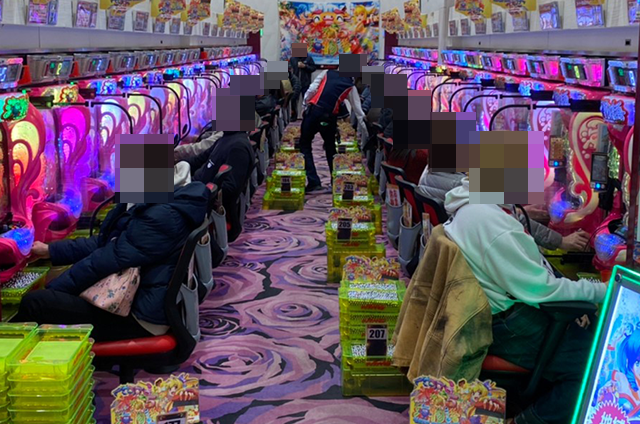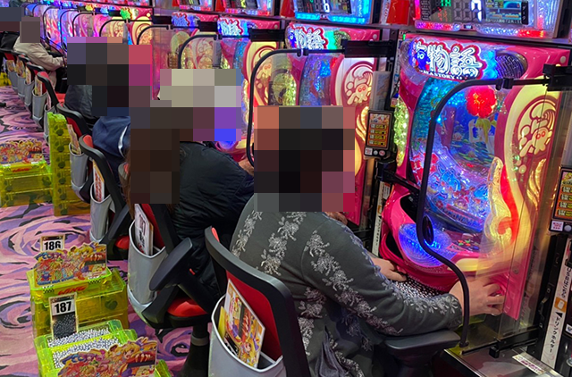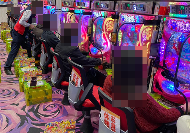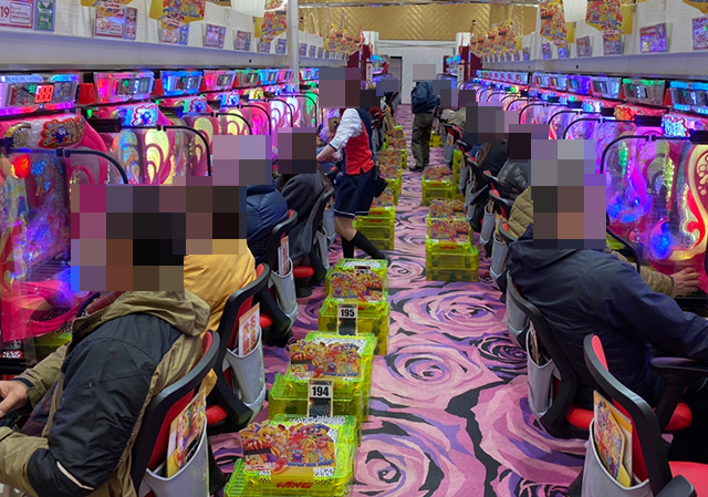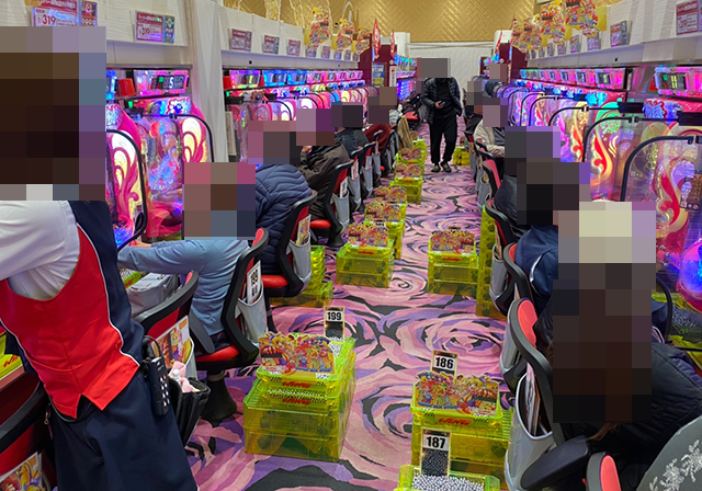 花柄のカーペットが敷かれているなど、きらびやかな内装のホール内では、多くのプレイヤーが楽しそうに遊技をおこなっていた。