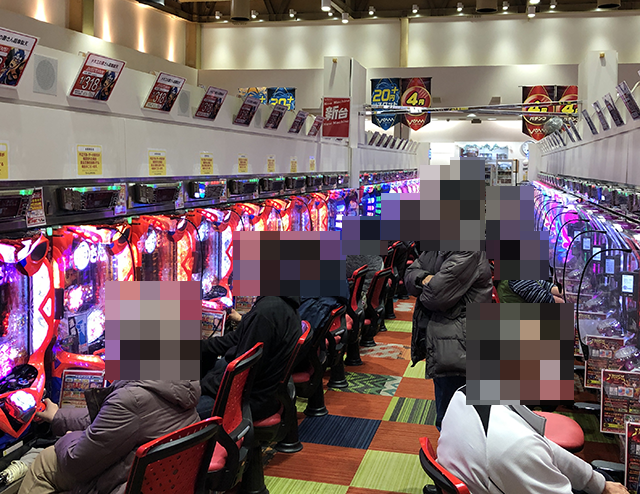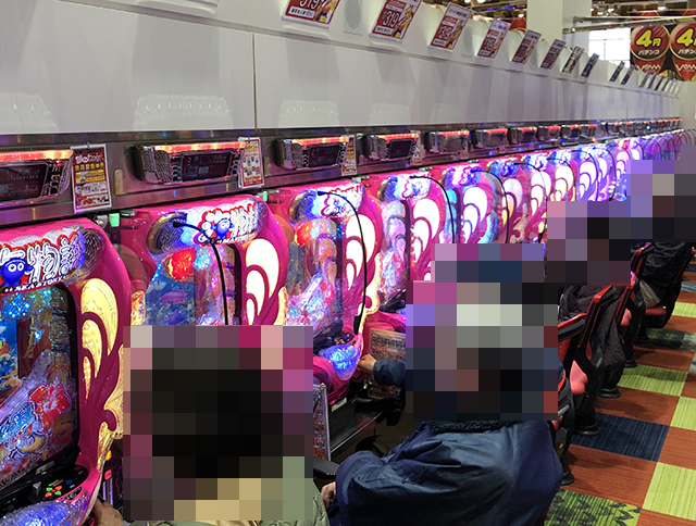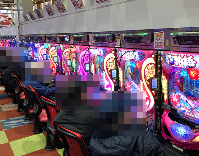 16時過ぎのパチンコをみてみると、海物語シリーズが目立っていた。