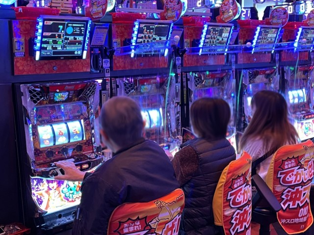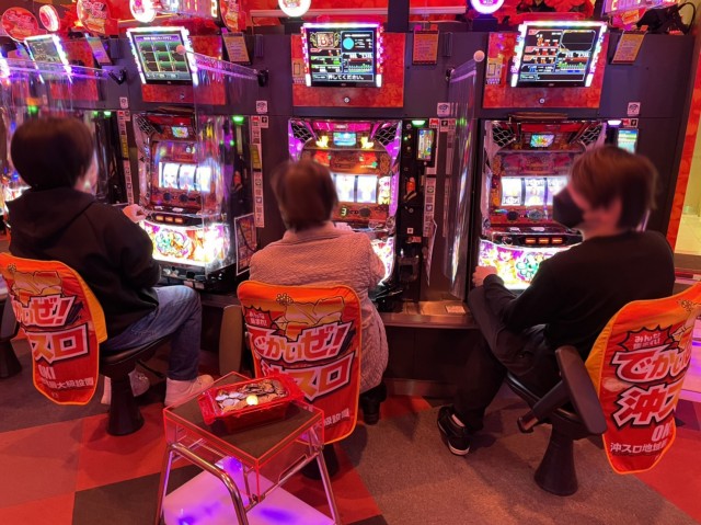 各取材日共に地域最大級&同店自慢の沖スロが火を噴いた! いずれの機種も稼働は高い上に大当り表示やドル箱数も多く、店内は活気に溢れていた。