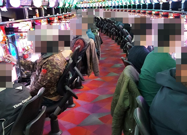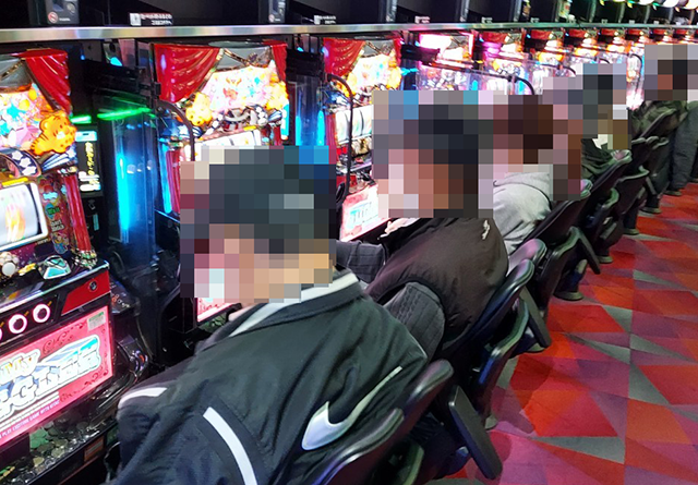 夕方頃の店内はパチスロのにぎわいが大きく、さまざまな機種が高稼働となっていた。