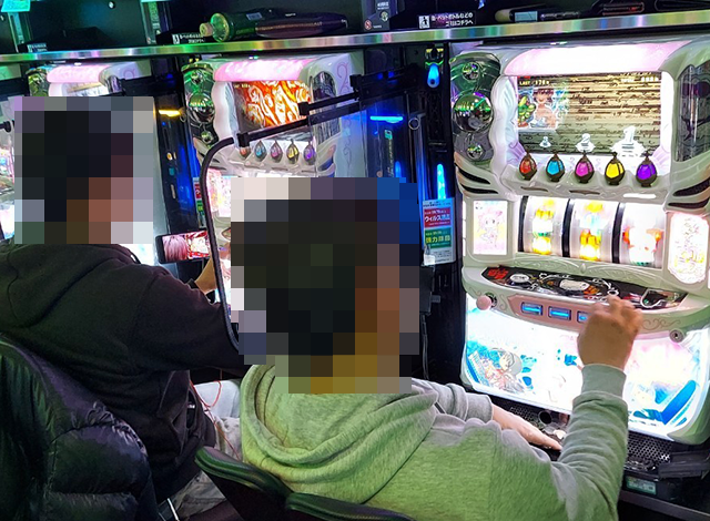 盛り上がっている場所が多いなかで、ひときわ目立っていたのが『マイジャグラーV』!