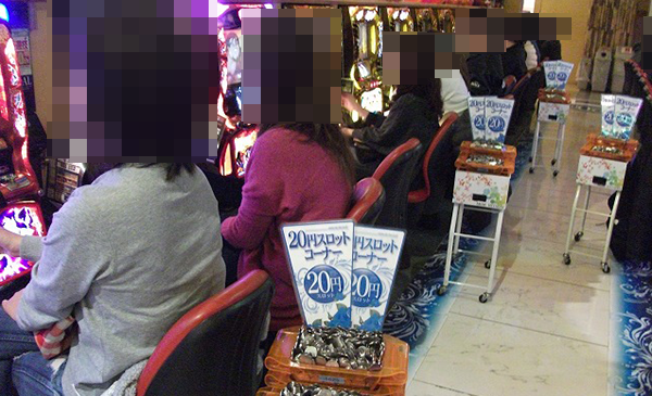 20円パチスロでは「沖ドキ!-30」が高稼働で、ほとんど満席状態。