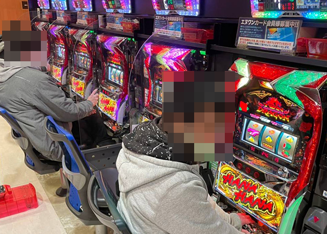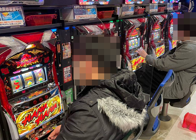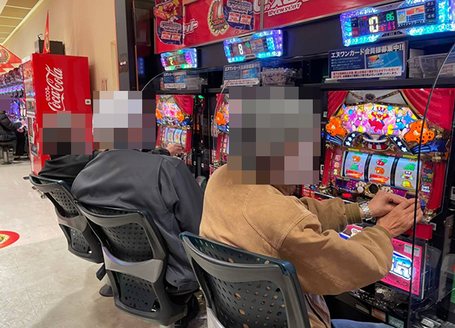 店内を進んでいくと、パチンコとパチスロの両方に活気のある光景が広がっていた。